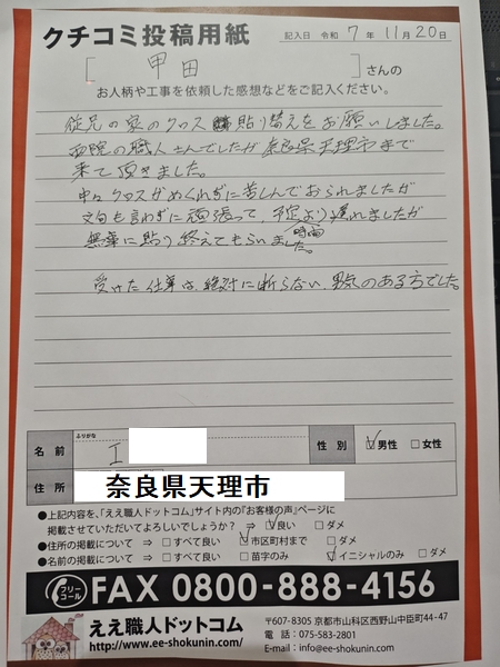 西院の職人さんでしたが奈良県天理市まで来て頂きました。